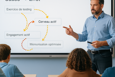 Questionner, inciter le cerveau à faire des prédictions et mettre en relation des connaissances entre elles, sont des facteurs prioritaires de la mémorisation.